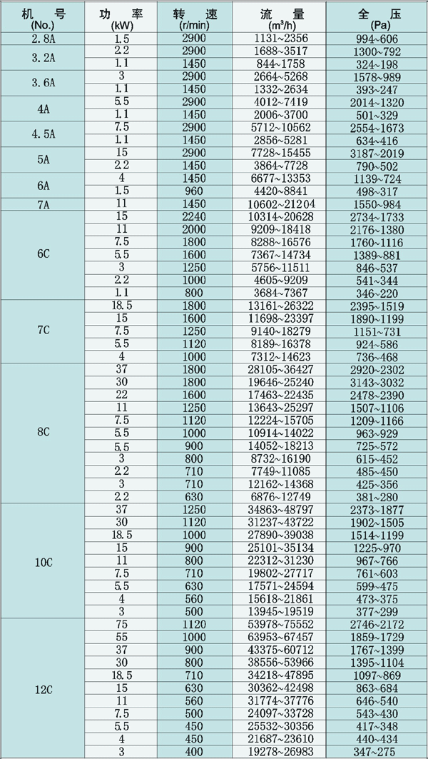 F4-72型玻璃鋼防腐通風機其性能參數(shù)與安裝尺寸與4-72型離心通風機相同。