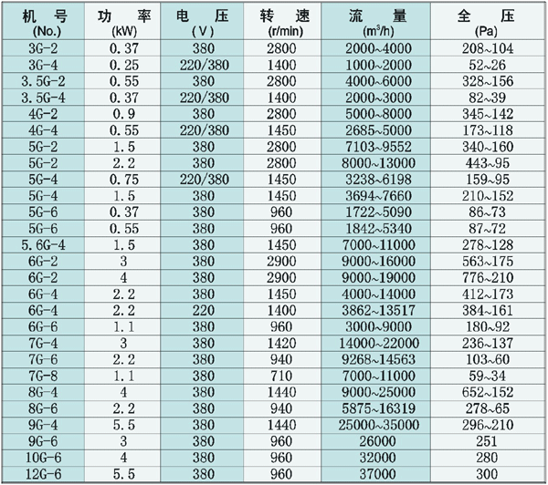 常用離心通風機系列